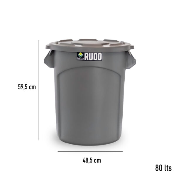 Recipiente de Residuos RUDO Redondo 80 Lts (Art. 8345), ¡De Gran capacidad!