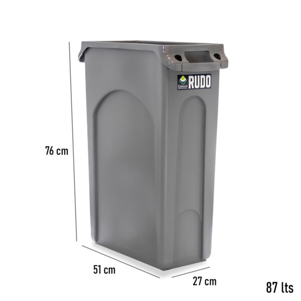 Recipiente de Residuos RUDO Slim rectangular 87 Lts (Art. 8350), De Gran capacidad, y a su vez, un diseño delgado para adaptarlo a los diferentes espacios.