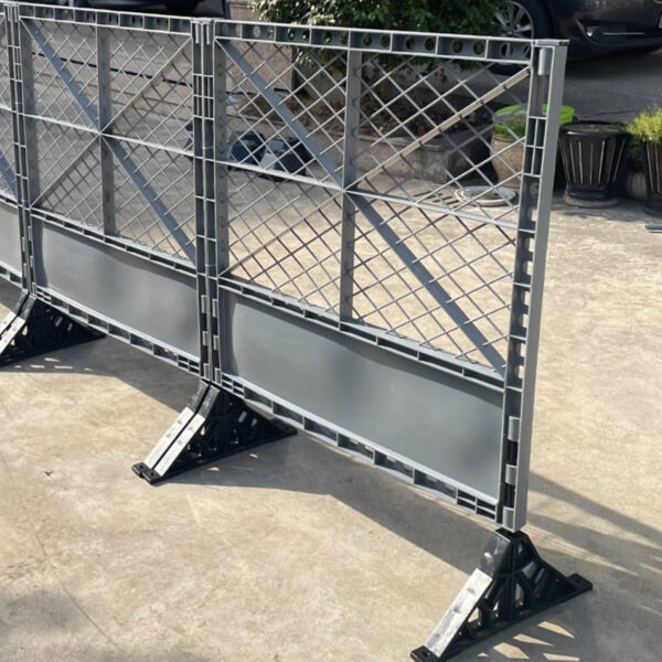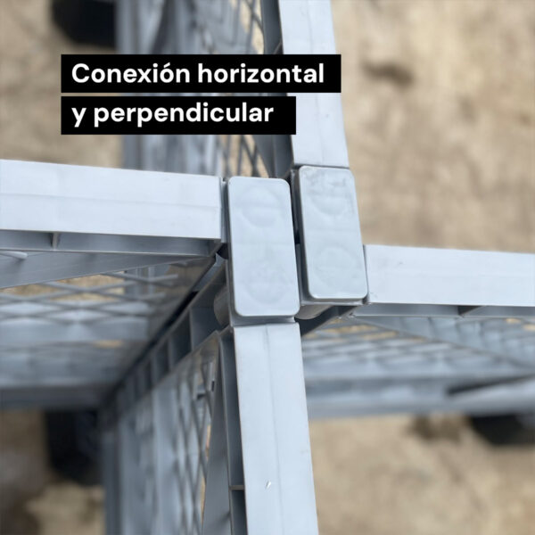 Al conectarse las vallas para reforzarlas pueden unirse con precintos para quedar mas firmes. La unión de las mismas puede ser tanto horizontal como a 90 grados. Pueden apilarse de forma vertical.