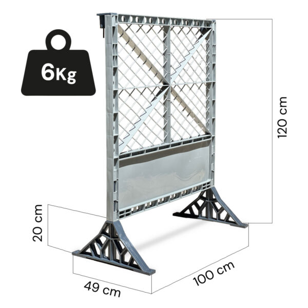 El producto consta de la Valla con 2 patas escuadra y 2 piezas conectoras.